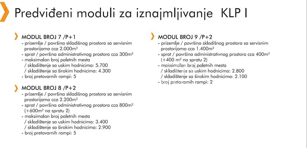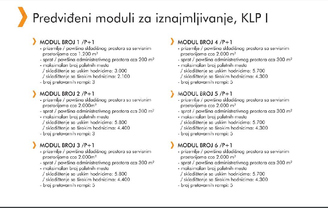 U ponudi je najsavrameniji logisticki centar u Srbiji, koji ima magacinske prostore velikih kapaciteta sa pratecim kancelarijskim sadrzajem, deljiv na 10 modula i veci broj zakupaca. Objekat je sa najsvramenijim standardima kvaliteta FM GLOBAL i LEED standardima Mogucnost iznajmljivanja magacinskog prostora sa temperaturnim rezimom i ADR delom. Izuzetno komforno interno saobracajno resenje Brojni pomocni objekti: -Portirnice -Trafo stanica -Pumpna stanica -Sprinkler rezervoar -Rezervoar za hidrantsku mrezu Materijalizacija objekata uradjena je po svetskim savremenim standardima , najboljeg kvaliteta. Postanite deo savremenog tima koji ce znati da prepozna benfite ovakvog prostrora Visina rente je 4eura/m2 Agencijska provizija 50% Reg.br. 070