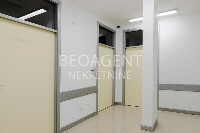 Odlican poslovni prostor od 149m2 koriscen kao poliklinika . Sastoji se od 7 prostorija , 2 toaleta i tus kupatila. Nalazi se u suterenu , novije zgrade i nema dnevnog svetla. Grejanje je centralno i placa se po potrosnji . Prostor je u odlicnom stanju sa izuzetnom ventilacijom i klimatizacijom. Agencijska provizija 2% Registarski broj 070