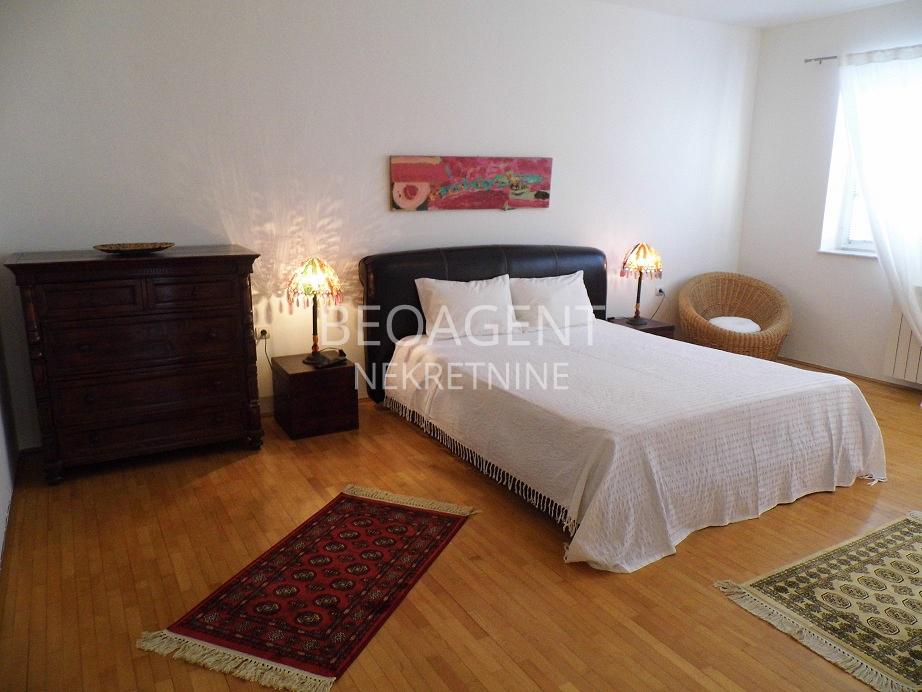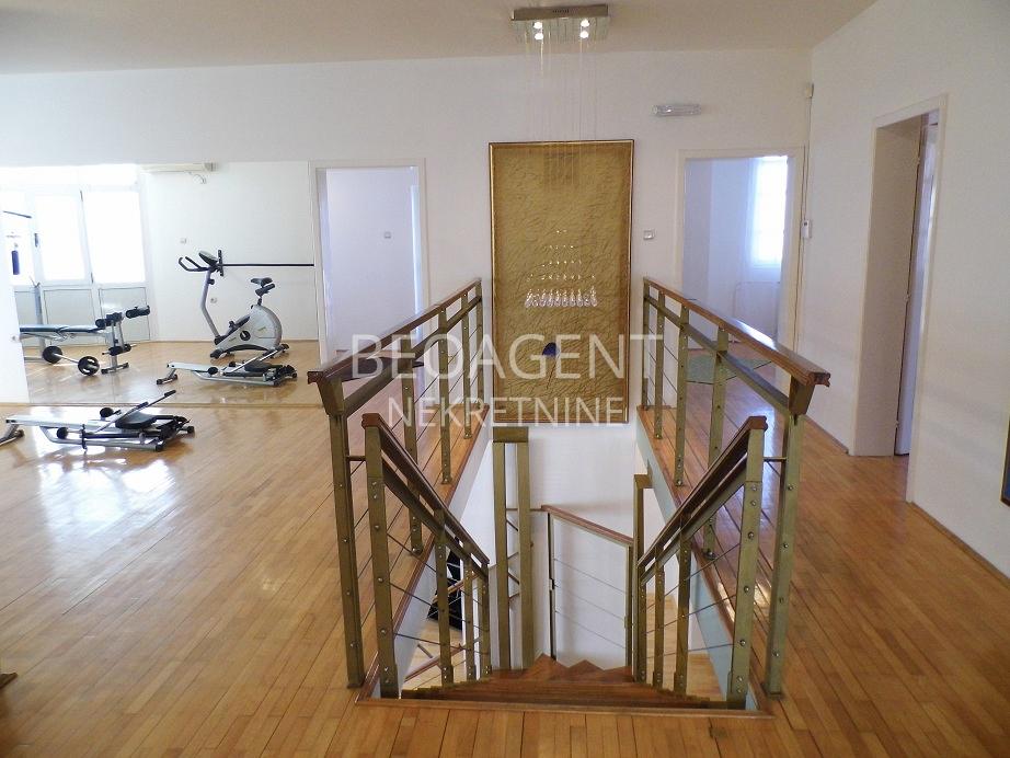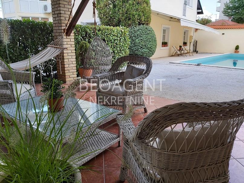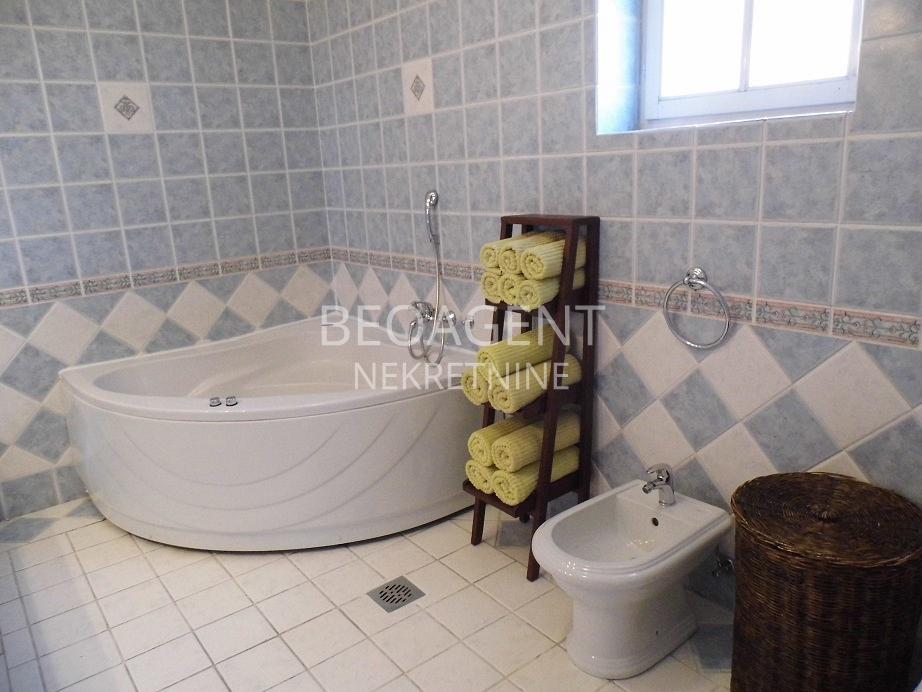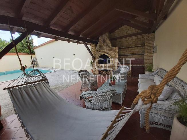 U prilici smo da vam ponudimo reprezentativnu kucu na Vozdovcu povrsine 400m2 sa dvoristem od 750m2 na dve etae. Kuca je u potpunosti namestena i opremljena savremenim namestajem i belom tehnikom. Izuzetno lep i prostran dnevni boravak i potpuno opremljena kuhinja za 12 osoba u cijem sastavu je predivna polica za 70 flasa vina, sa kompletno pratecim sadrzajem do najsitnijih detalja. Pet spavacih soba koje osim osnovnog namestaja imaju i tekstilni namestaj tako da u svakoj postoje kompleti za letnju/zimsku sezonu od jastuka do prekrivaca sa trenutno najkvalitetnijim dusecima. Dve spavace sobe imaju sopstvena kupatila, od kojih master soba ima i jacuzzi kadu, dva nezavisna toaleta i posebnu prostoriju kao garderober. Izdvojena prostorija za pranje i peglanje vesa u potpunosti opremljena neophodnim tehnickim aparatima i belom tehnikom. U sklopu vesernice je i balkon na koji ta prostorija ima izlaz. Tehnicke karakteristike kuce: Dve digitalne telefonske linije, centralno grejanje (gas) i kao alternativu i grejanje na struju takodje centralno, kablovsku, alarmni sistem PARADOX, video nadzor sa 6 kamera, firme ADEMCO USA i HIC VISION sa DVR recivrom HIK Vision i sve to jr aktivno 24/7 nadgledano od strane SOT kompanije, brzi internet. Elektricna glavna ulazna kapija. A kao kuriozitet ove predivne reprezentativne kuce i bazen dimenzija 6mx10m, koji se zagreva sa sistemom na prirodni gas, teretanu, ozidani prostor za rostilj, kompletnu opremu sa lezaljkama i suncobranima. RECENZIJE KORISNIKA: JAPAN TOBACO, FRENCH AMBASSY. RETKO U PONUDI. Slobodan od 01.11.2024 Agencijska provizija 50%. Registarski broj 070.