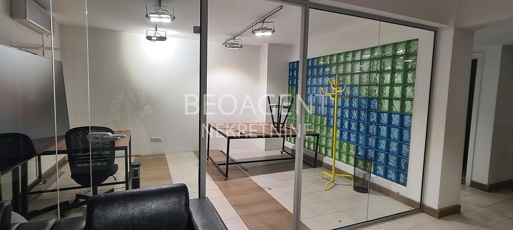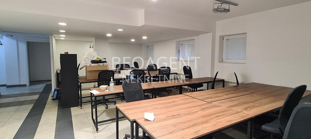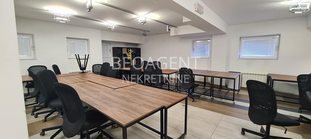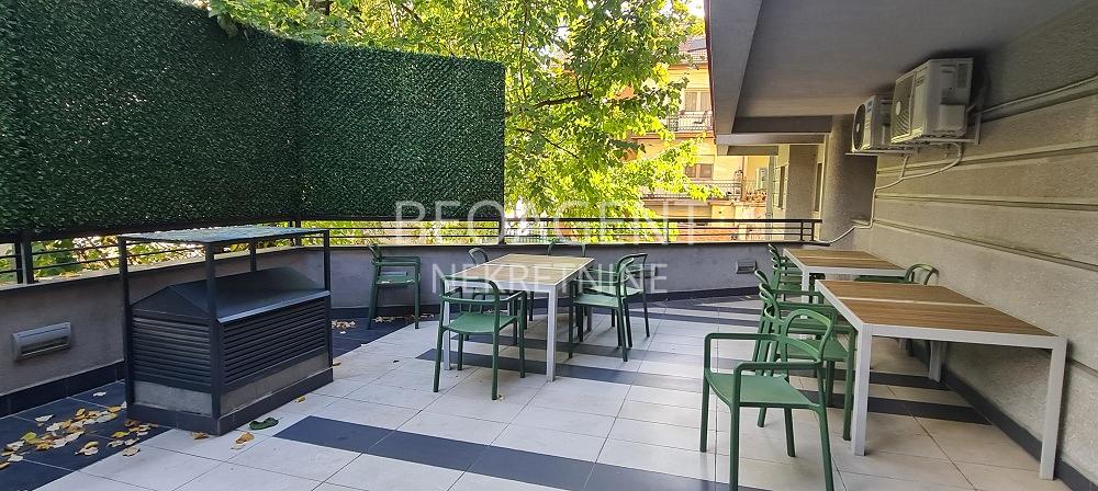 LUX poslovno kancelarijski prostor povrsine 300m2 u prizemju stambeno-poslovnog objekta. Prostor je kompletno opremljen kancelarijskom opremom , u potpunosti prilagodjena savremenom kancelarijskom radu. Tehicke karakteristike poslovno kancelarijskog prostora prate kvalitet opremljenosti ovog LUX prostora : racunarska mreza, opticki kabal, interenet, KATV, interfon, video nadzor. Strukturno je organizovan vecim delom kao openspace, sa postojeci uradjenom REC ormanom, cajnom kuhinjom, 2 toaleta,( m/z), info pult, konferens sale, izdvojenim meeting officima. U okviru zakupa , zakupcima su omogucena i 2 garazna mesta kao i vise otvorenih parking mesta. U sklopu ovor prostora je i terasa od 90m2 koju buduci zakupac moze i zastakliti i napraviti dodatni prostor .Idealna za prezentacije i sl. Agencijska provizija 50% Registarski broj 070
