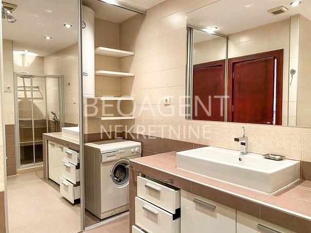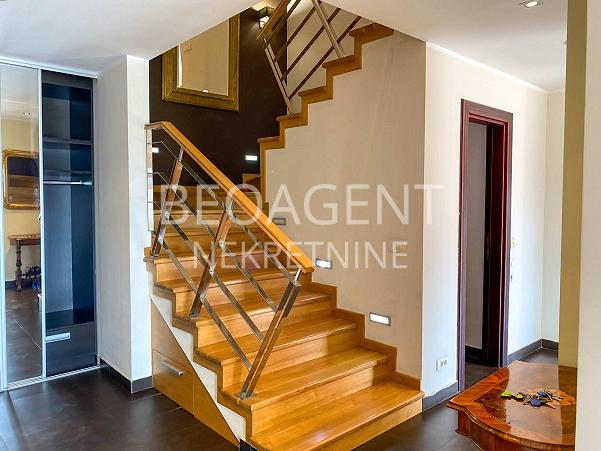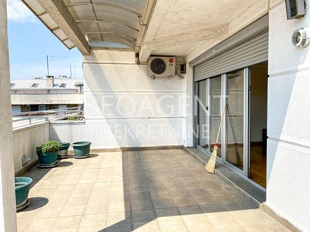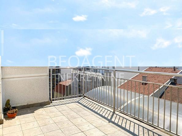 Izuzetan lux poslovno stambeni prostor u samom centru Vracara u neposrednoj blizini Crvenog Krsta i Gradica Pejton. Prostor je novogradnja , duplex na 4 spratu, povrsine 180m2 i sa predivnom terasom povrsine 40m2. Prvi deo duplexa sastoji seood kuhinje, dnevne sobe , kupatila i ostave. Gornji deo duplexa cine 3 spavace sobe sa 2 garderobera, jednim malim i jednim velikim kupatilom. Izuzetan kvalitet stolarije, keramike i sanitarija, vrhunski hrastov parket. Uz stan ide i garazno mesto. Agencijska provizija 50% Registarski broj 070