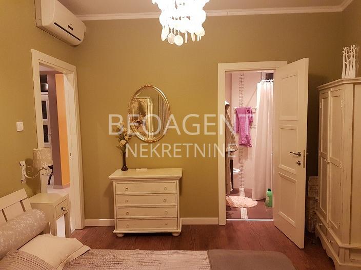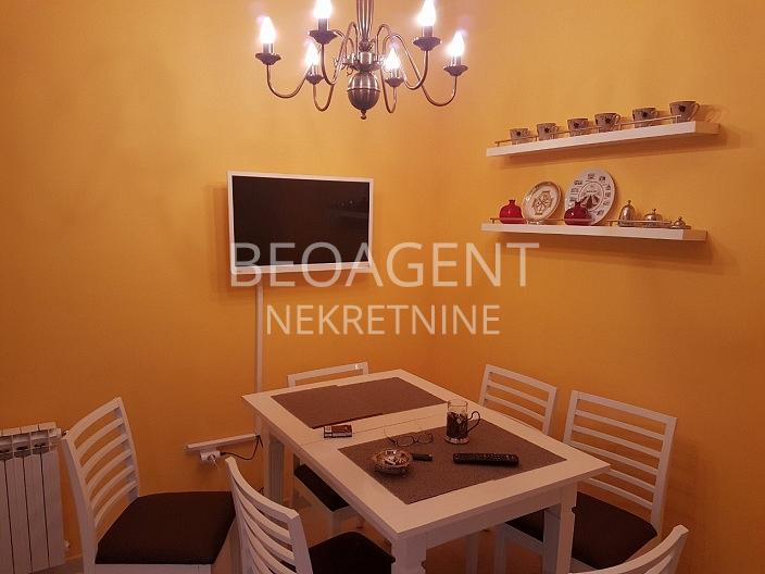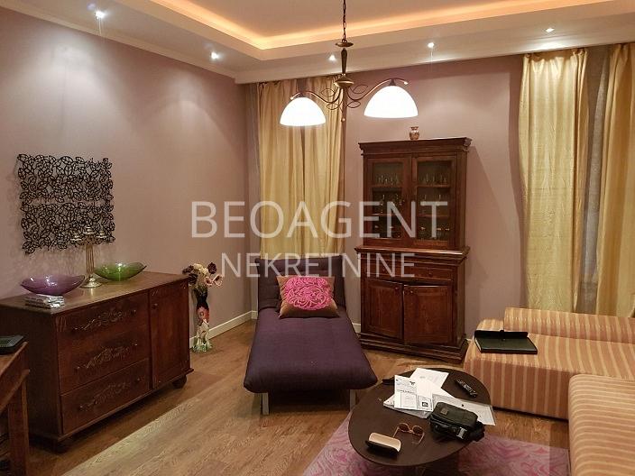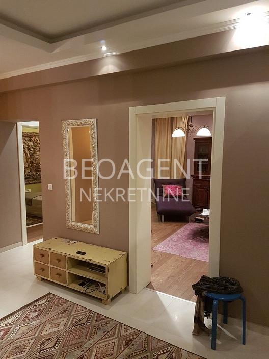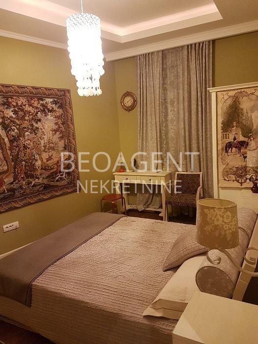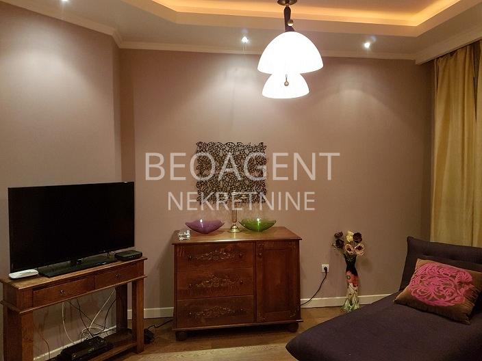 U strogom centru Beograda, na atraktivnoj lokaciji u blizini Politike, lux namesten 2.5 stan. Sastoji se iz hodnika, dnevnog boravka, kuhinje sa trpezarijom, 2 spavace sobe i 2 kupatila. Agencijska provizija 50 % Reg br. 070