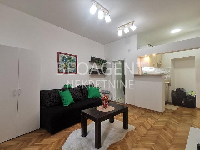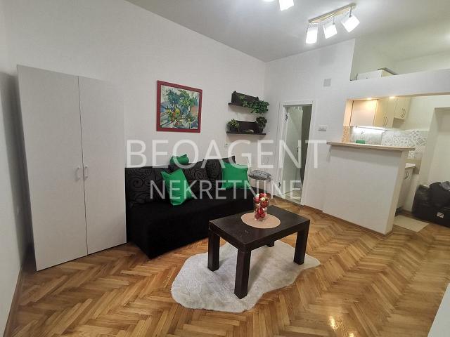Izdaje se u strogom centru potpuno renoviran jednosoban stan. Sastoji se od kuhinje,sobe,kupatila i lepe terase sa lepim pogledom na dvorište. Agencijska provizija 50% reg.br. 070